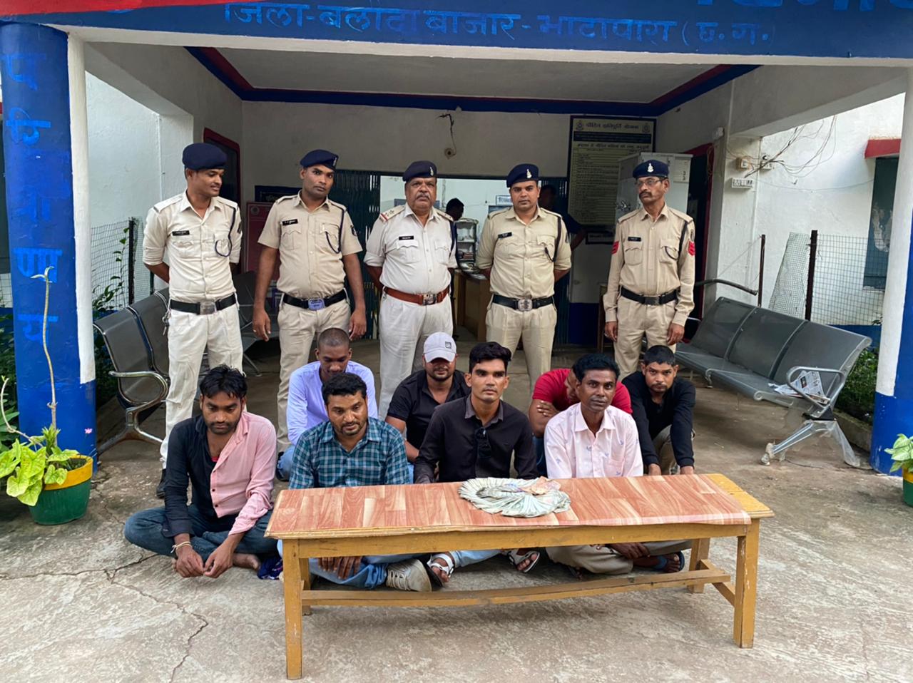 धोबनीडीह में ताश पत्ती जुआ खेलने वाले 08 आरोपियों को भटगांव पुलिस व सायबरसेल बलौदबाज़ार की संयुक्त टीम ने रंगे हाथों किया गिरफ्तार