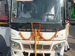 छत्तीसगढ़ के बिलासपुर में कोरोना काल के 32 माह बाद फिर से सिटी बस की सुविधा शुरू हो गई है। सोमवार को पूजा-अरर्चना कर हरी झंडी दिखाकर सिटी बस को रवाना किया गया। इस दौरान सभापति शेख नजीरूद्दीन ने स्टेयरिंग संभालते हुए मेयर को कंडक्टर बनाया और नगर निगम आयुक्त और एमआईसी मेंबर को यात्री बनाकर डिपो तक सैर कराया। यात्रियों को 20 रुपए में सिटी बस की सुविधा मिलेगी। रूट चार्ट तय होने के साथ ही रेट लिस्ट का निर्धारण एक-दो दिन में कर दिया जाएगा।