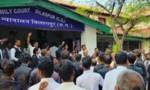 बिलासपुर. फैमिली कोर्ट के जज ने सिपाही से वकील का हाथ पकड़कर बाहर निकलवा दिया. इससे नाराज जिला अधिवक्ता संघ ने आज जज के खिलाफ मोर्चा खोल दिया और फैमिली कोर्ट के बाहर नारेबाजी करते हुए जमकर हल्ला बोला. वकीलों ने जज से माफी मांगने की मांग करते हुए धरना-प्रदर्शन शुरू कर दिया है.