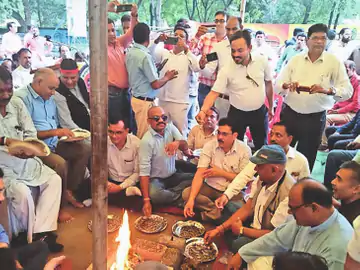 छत्तीसगढ़ कर्मचारी अधिकारी फेडरेशन के बैनर पर 2 सूत्रीय मांगों को लेकर चल रहा पांच दिवसीय हड़ताल का शुक्रवार को समापन हो गया। अंतिम दिन कर्मचारियों ने राज्य सरकार की सद्बुद्धि के लिए धरना स्थल तानसेन चौक पर हवन पूजा किया। इसके बाद रैली के साथ कलेक्टोरेट पहुंचे। लेकिन पुलिस ने गेट पर ही रोक दिया।