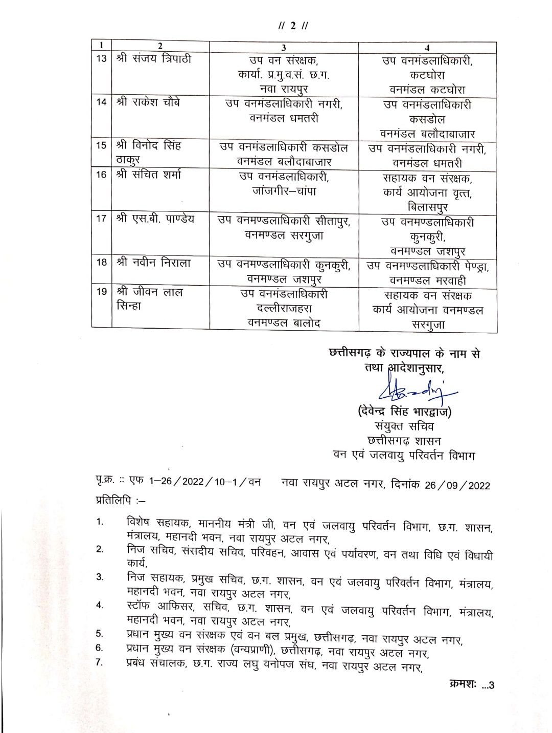 रायपुर। वन विभाग ने राज्य के डेढ़ दर्जन से ज्यादा डिप्टी डीएफओ के तबादले किए गए हैं।