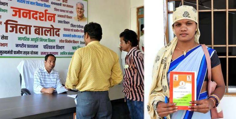 मुख्यमंत्री श्री भूपेश बघेल के मंशानुरूप कलेक्टर डॉ. गौरव कुमार सिंह के निर्देशानुसार आम लोगों के समस्याओं के निराकरण हेतु कलेक्टोरेट बालोद में प्रत्येक कार्य दिवसों में आयोजित होने वाली कलेक्टर जनदर्शन आम लोगों के लिए अत्यंत लाभप्रद सिद्ध हो रहा है। जनदर्शन में पहुॅचे सुदूर अंचल सहित जिले के सभी क्षेत्रों के लोगों की मांगों एवं समस्याओं के निराकरण हेतु त्वरित कार्रवाई होने से प्रतिदिन जनदर्शन में पहुॅचने वाले लोग बालोद जिला प्रशासन की इस नई व्यवस्था की भूरी-भूरी सराहना कर रहे हैं। जनदर्शन में आज कलेक्टर डॉ. गौरव कुमार सिंह के निर्देश पर खाद्य विभाग के अधिकारियों ने राशन कार्ड बनाने की मंाग लेकर पहुॅची गुण्डरदेही विकासखण्ड के ग्राम रेंगाकठेरा निवासी श्रीमती संगीता कुम्भकार को तत्काल नया राशन कार्ड प्रदान किया।