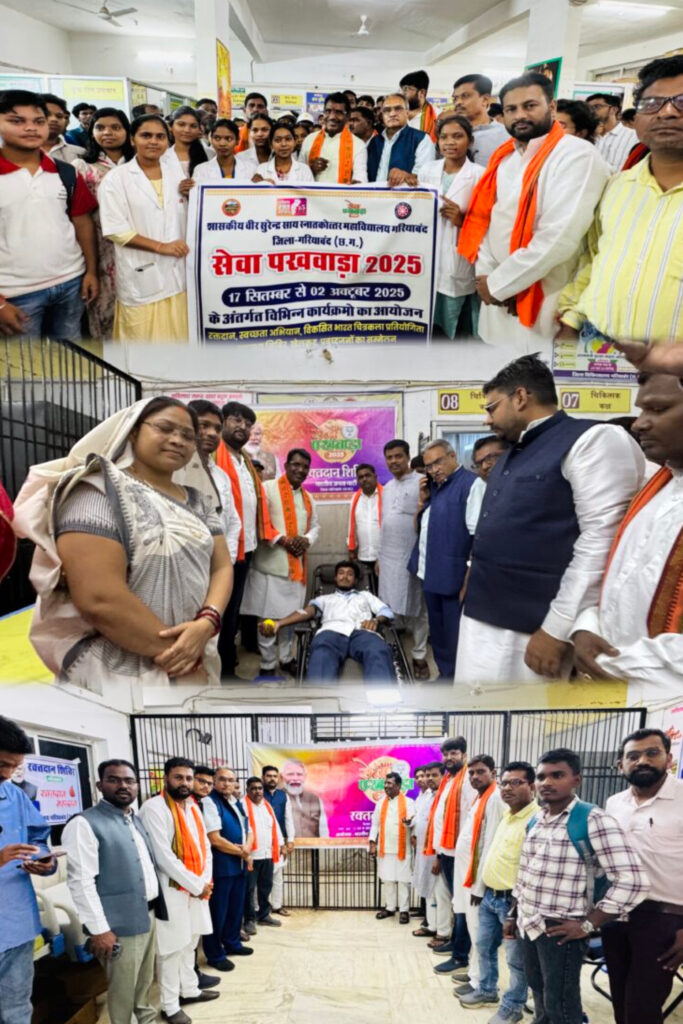PM Modi Birthday: जिला अस्पताल में भाजपा द्वारा हुआ विशाल रक्तदान शिविर,सैकड़ों कार्यकर्ताओं और छात्रों ने लिया हिस्सा,विधायक बोले – मोदी जी का जीवन समर्पण का प्रतीक, रक्तदान उसी सेवा का जीवंत उदाहरण है।